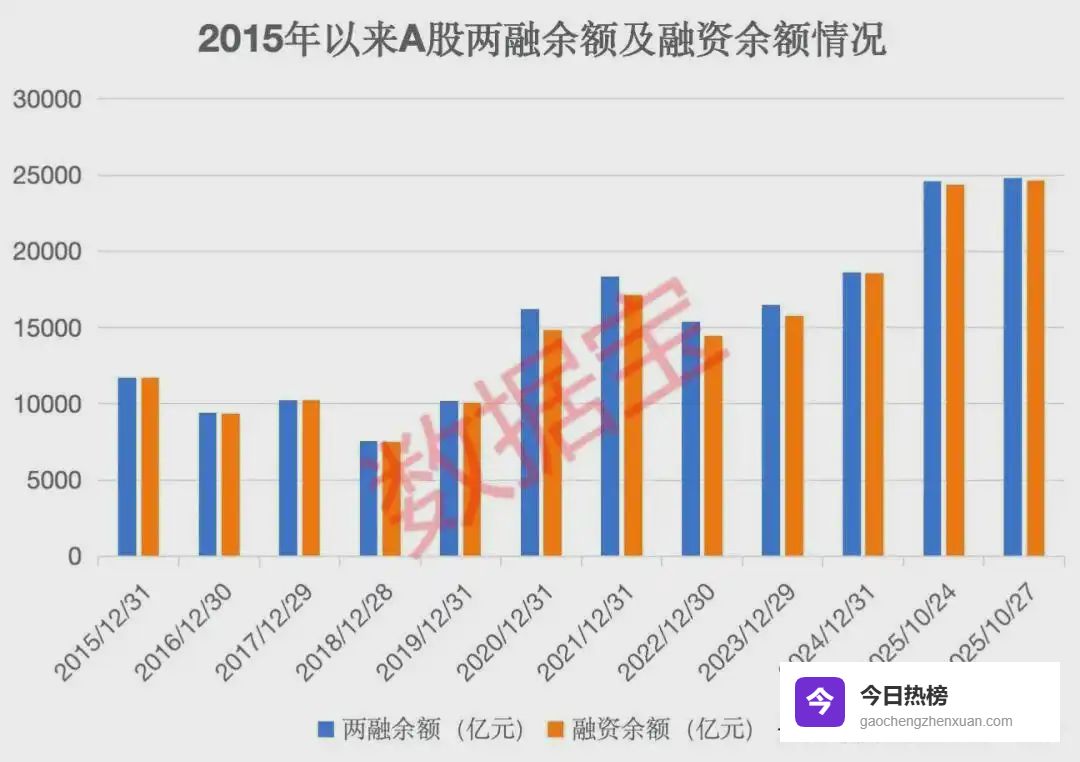从杠杆资金来看,截至10月27日,A股两融余额达到2.48万亿元,其中,融资余额达到2.46万亿元,两者均创历史新高。
