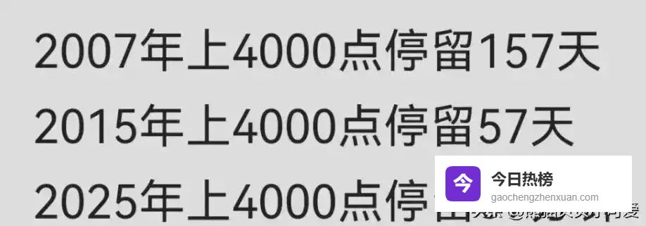 2得而复失的4000点,和相对冷淡的市场情绪,该怎么看?时隔十年,A股再度站上4000点关口。与2015年那轮“快牛疯牛”不同,此次4000点的到来没有全民狂欢的燥热,反而充斥着“恐高症”的犹豫