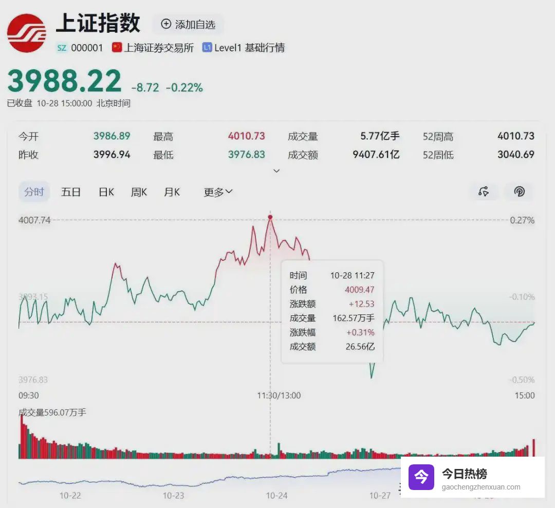 3999.07点——10月27日,上证指数在这个距离4000点仅一步之遥的位置停下脚步,整个市场屏息静待历史性时刻的到来。