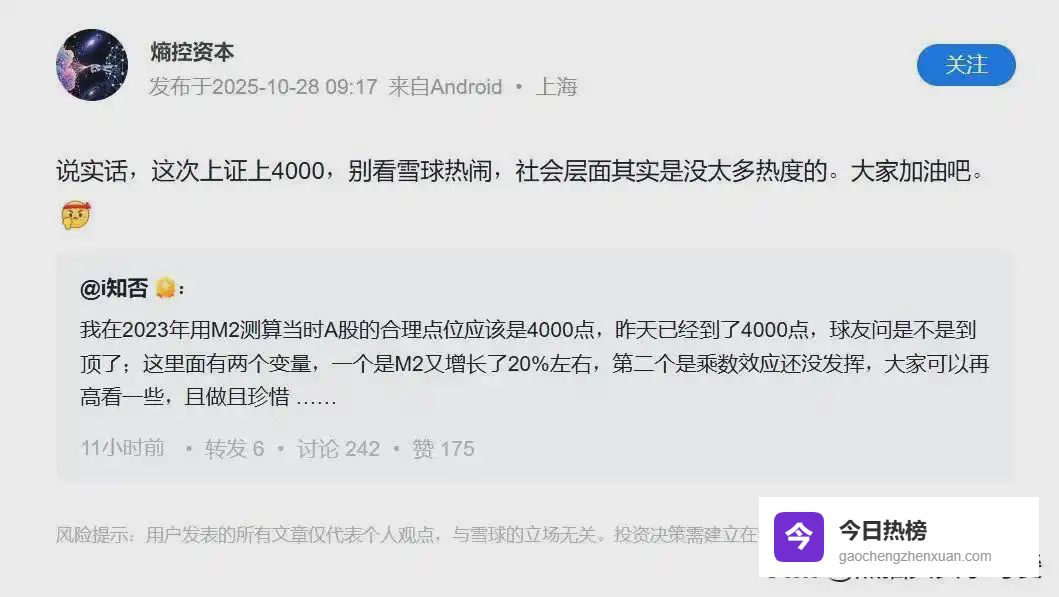 虽然这一次上4000的过程很稳,也不燥,但是在这个过程中,民众,散户,市场资金的参与感和存在感,和上一轮4000点的时候,已经完全不一样了。