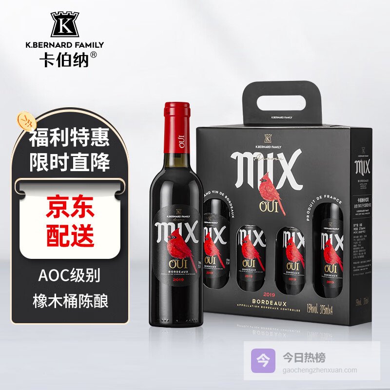 【京东自营】卡伯纳法国进口小红鸟迷思波尔多小瓶干红葡萄酒礼盒微醺甜酒4*375年货¥