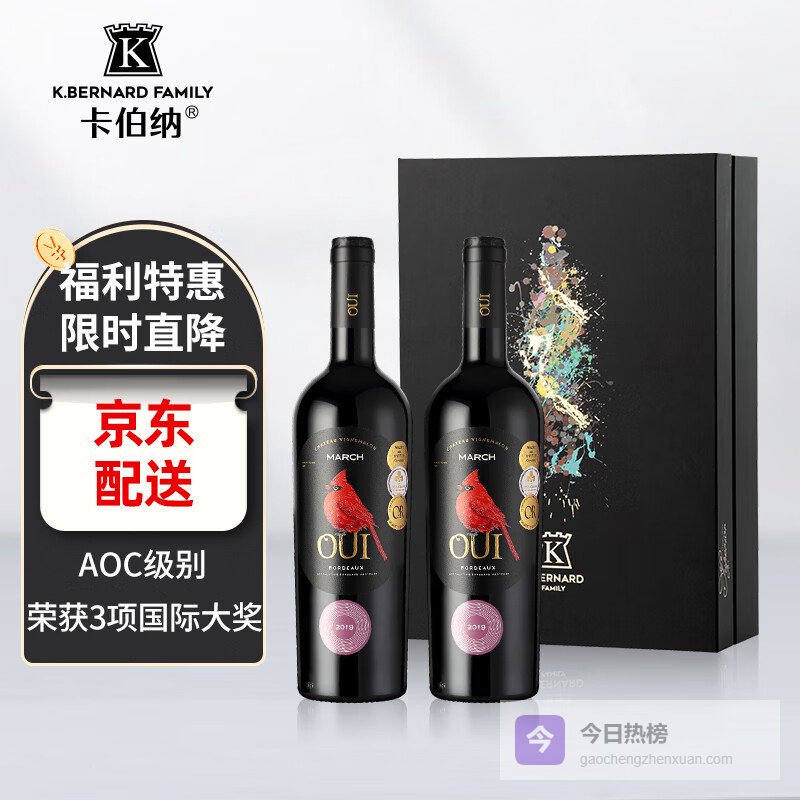 【京东自营】卡伯纳法国原瓶进口三月波尔多干红葡萄酒AOC/AOP级双支红酒热门年货礼¥