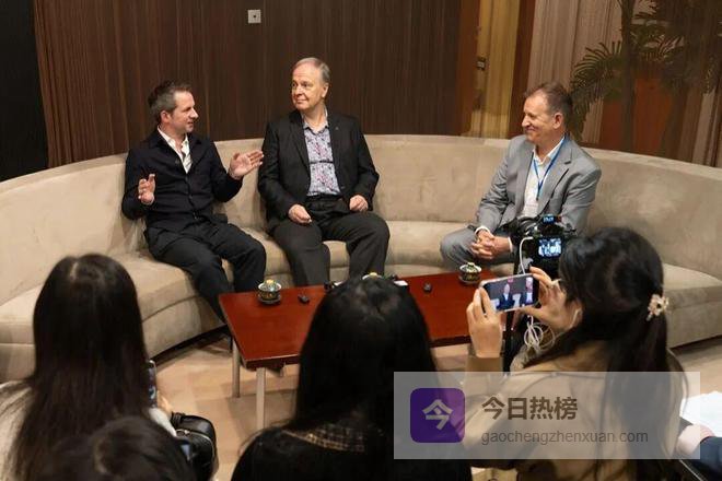 音乐会前,BBC交响乐团团长比尔·钱德勒、指挥萨卡里·奥拉莫和钢琴家贝特朗·夏玛尤接受媒体采访。