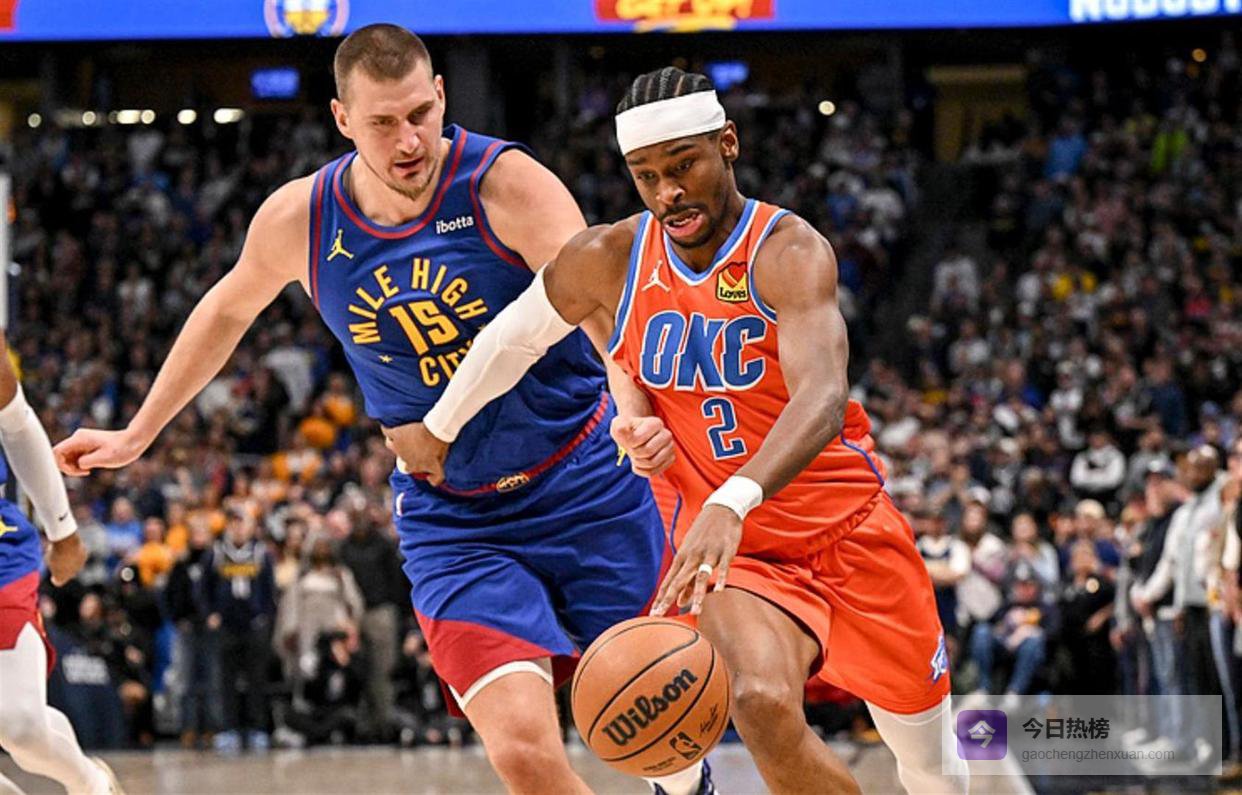 这场胜利让马刺的战绩提升到33胜16负。 而原本坐在西部第二的丹佛掘金,今天却掉了链子。 他们在主场对阵联盟领头羊俄克拉荷马雷霆。 掘金缺少了戈登等人,雷霆也少了杰伦-威廉姆斯。 但雷霆核心谢伊-吉尔杰斯-亚历山大完全掌控了比赛,他16投11中,高效拿下34分,还送出了13次助攻,盘活了全队。 新秀卡森-华莱士三分球11投7中,射下27分。