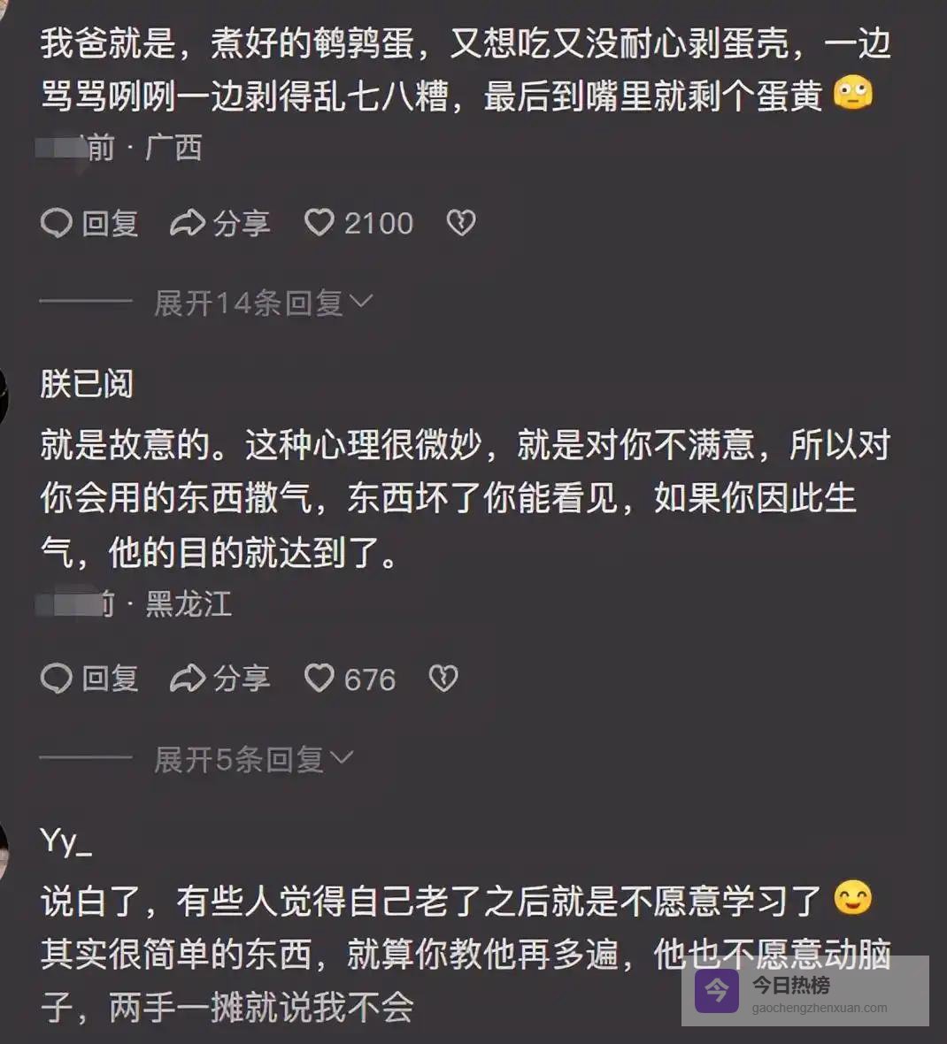 但是她每次回家,爸妈不说不欢迎,也不是明目张胆的不喜欢。相反,每次爸妈都会表现的很热情,但就是在细枝末节的事情上,总让她崩溃。