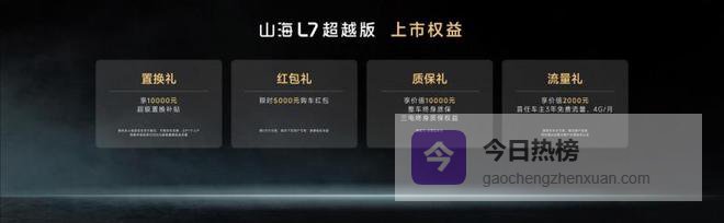 价格方面,2026款捷途山海L7超越版推出3款车型,官方指导价11.49万元-12.79万元,上市期间提供4重购车礼遇,限时抢购价9.99万元-11.29万元,让高品质电混出行触手可及。