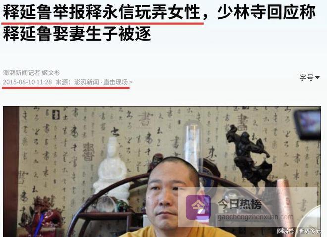 2015年,弟子释延鲁实名举报,直指释永信存在豪车侵占、资产转移、索要财物及私生活混乱等问题,引发轩然大波。