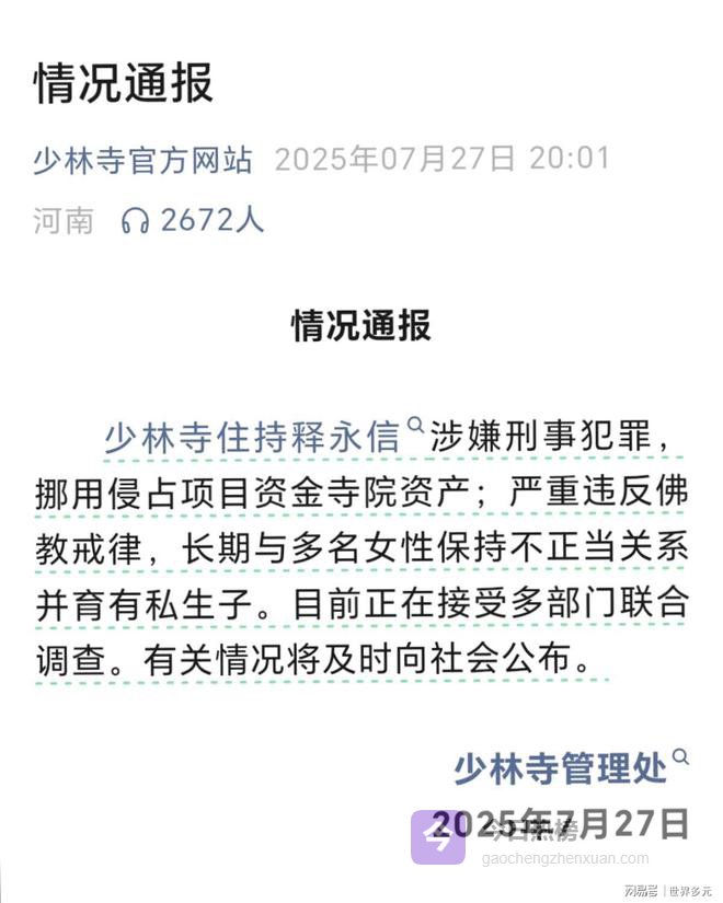 2025年7月27日,少林寺管理处发布重磅通报,彻底打破虚假平静。