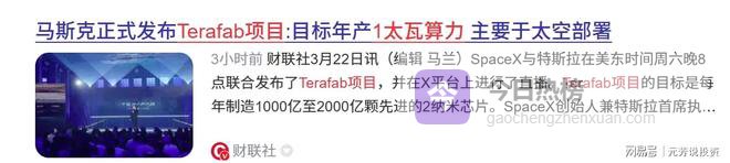 事件3:太空算力——Terafab项目公布,年产能超1太瓦算力
