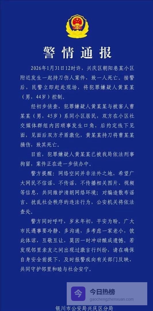 哎呀,宁夏那边出了个事儿,听了真叫人心里堵得慌。一个小区里的业主,本来都是邻居,抬头不见低头见的,可就因为在微信群里吵了几句嘴,火气上来没收住,约到线下动手,结果搞出了人命。具体哪个小区我就不点名了,反正这种事现在不算稀奇,但每回听到都让人觉得不值当。群里吵架,多半是为些鸡毛蒜皮——物业费高了、停车位少了、谁家狗吵了,本来一句话能说开的事,在屏幕上打成字,味道就变了,越说越呛,最后恨不得顺着网线爬过去干架。可现实不是游戏,真人上手,后果谁担得起?这事一出来,整个小区都蒙了,好好的日子不过,闹到这步田地,图个啥?