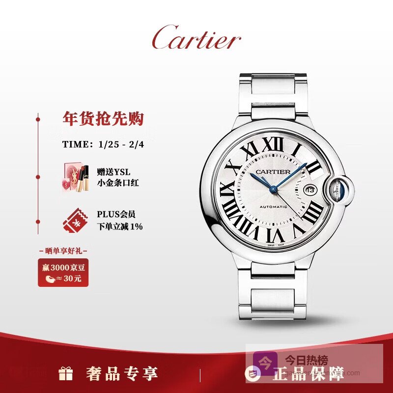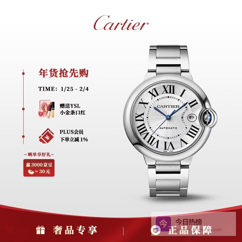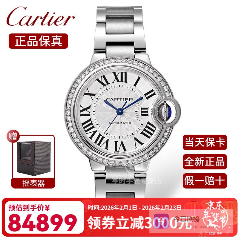 【品牌专营】卡地亚瑞士手表蓝气球系列时尚优雅自动机械表女士腕表【新年礼物】W4BB0023镶钻银盘3¥