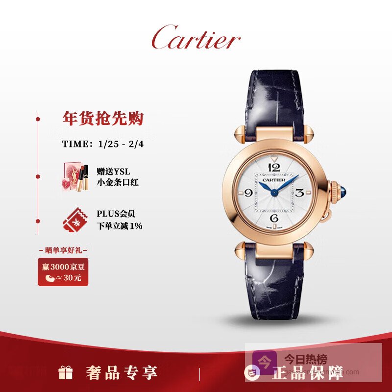 【京东自营】卡地亚瑞士手表系列18k玫瑰金石英手表女款WGPA0018礼物¥