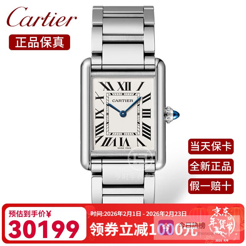 【品牌专营】卡地亚瑞士手表坦克系列时尚简约石英女表方形女士腕表【新年礼物】WSTA0106钢带银盘3¥