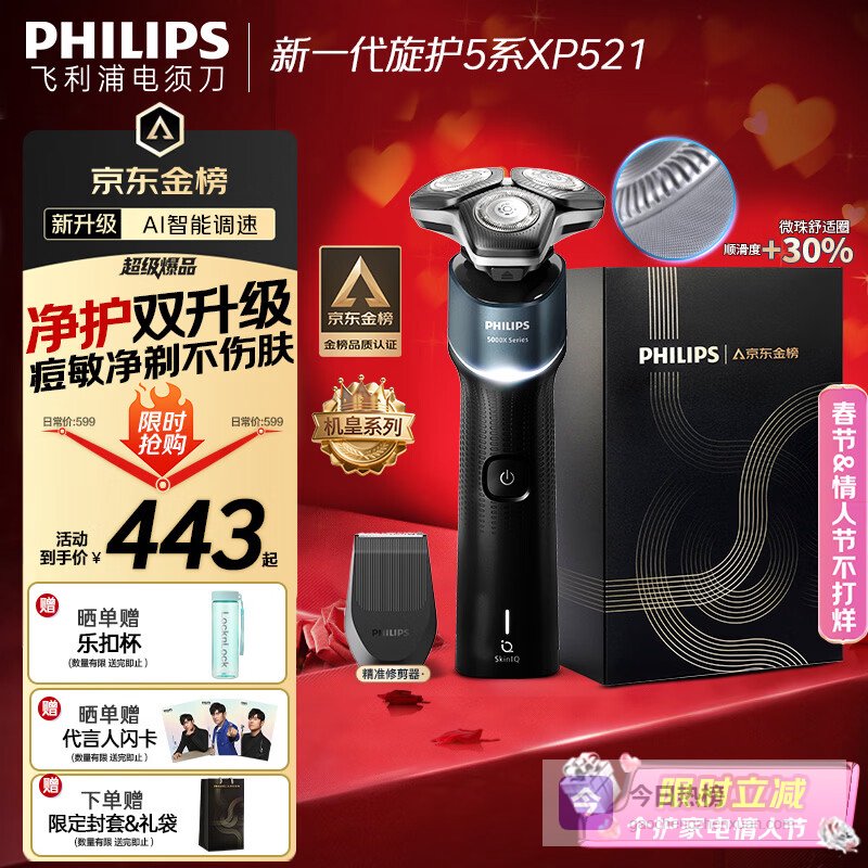 飞利浦(PHILIPS)电动剃须刀新一代旋护5系机皇系列 净护双升级AI智能痘敏肌刮胡刀年 情人节生日礼物送男生父亲¥