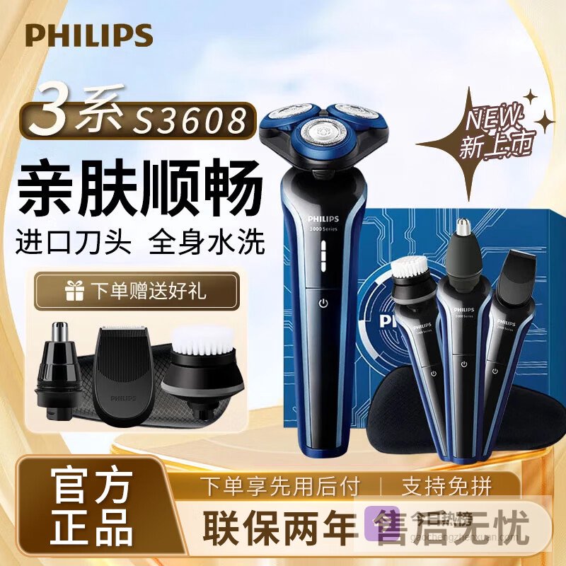 飞利浦(PHILIPS)电动剃须刀S3608/10 全新S3000系列男士刮胡刀全身水洗干湿双剃胡须刀520送男友送老公生日礼物 S3608¥