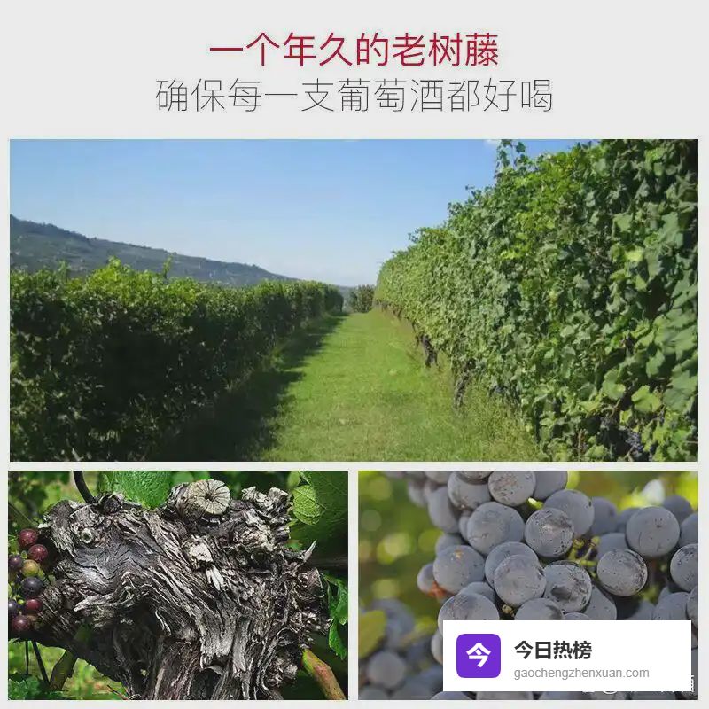 历史传承:甄选年久老树藤葡萄,古藤赋予的独特风味让每一杯酒都有故事可言。