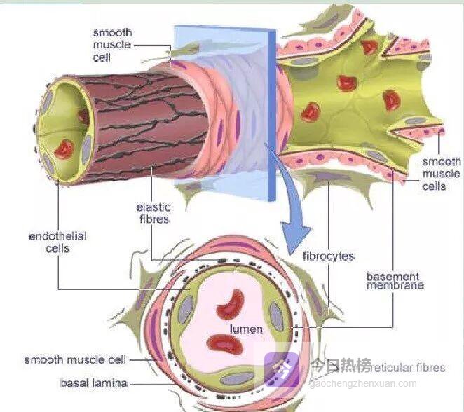 中膜层由胶原、平滑肌、弹力纤维构成,既撑起血管,也提供“血小板粘附码头”;