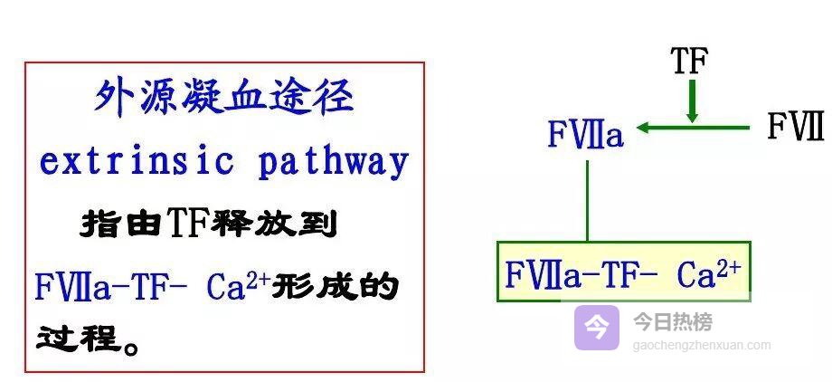 4.2 ❒ 外源性途径(TF→7a→10a) 组织损伤后 TF 入血,与Ⅶ形成复合物,无需接触相就能迅速激活Ⅹ。外源途径 快如闪电,但受 TFPI 这把“安全锁”严密调控。PT 是最常用的外源筛选试验。
