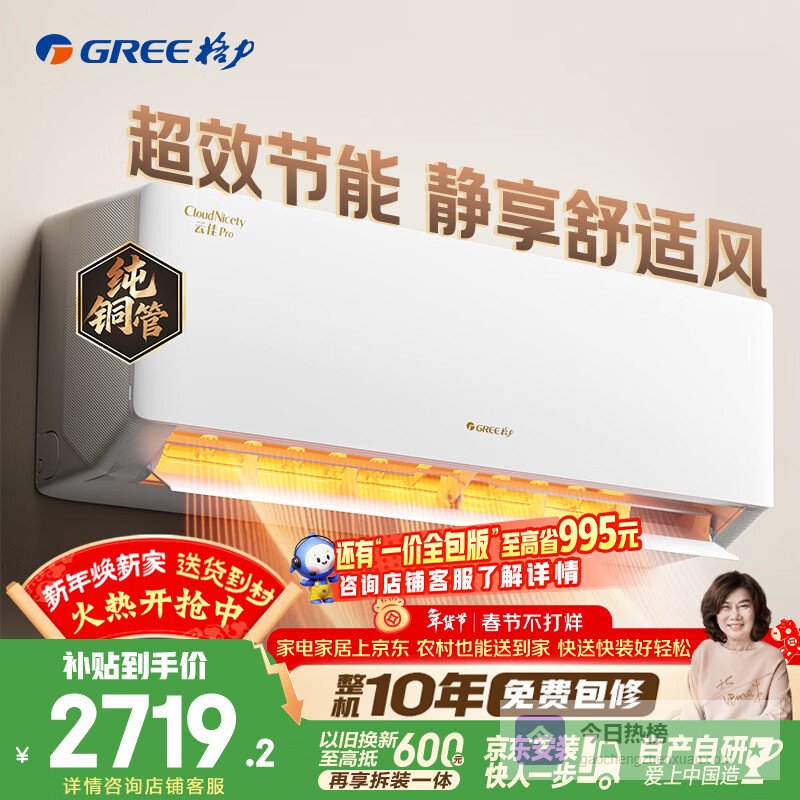 【京东自营】格力空调云佳pro1.5匹新一级能效变频纯铜管卧室挂机新品升级省电空调国家补贴KFR-3¥