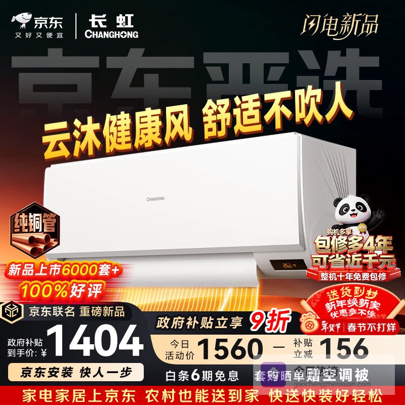 【京东自营】长虹空调京东严选京小宅大1匹新一级能效超省电冷暖纯铜管国家补贴卧室挂机KFR-26GW/¥