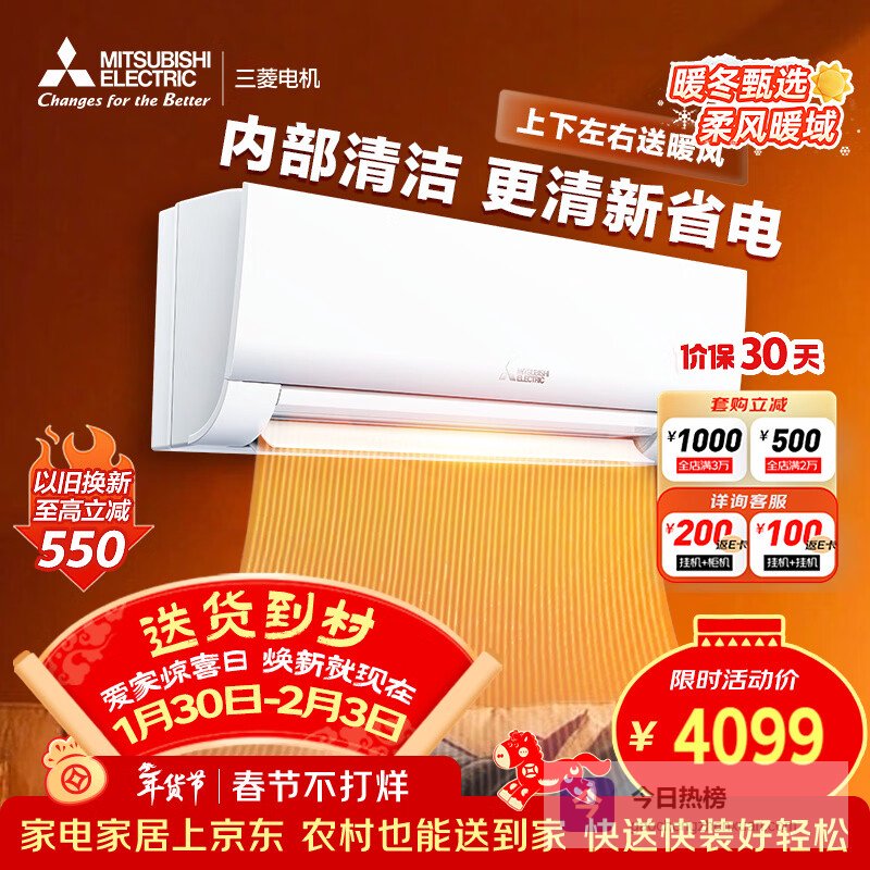 【京东自营】三菱电机空调BZ系列1.5匹新三级能效纯铜管银离子滤网内部清洁挂机MSZ-BZ12VA¥