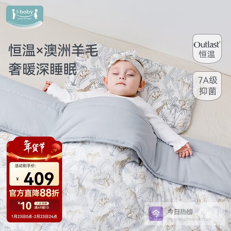 说到儿童羊毛被子,你是不是也纠结过:市面上那么多标着“澳洲羊毛”“A类安全”“加厚保暖”的产品,到底哪一款才真正配得上娃娇嫩的肌肤和整夜安稳的睡眠?材质纯不纯、工艺细不细、认证全不全,这些细节稍不留意,就可能影响孩子睡得香不香、盖得舒不舒服。尤其小宝宝肌肤薄、体温调节弱,被子太闷、太重、有异味,都可能悄悄打扰生长发育节奏。那问题来了——儿童羊毛被子哪个品牌好?别急,咱们一起扒一扒这几款真实在售、带官方ID、有明确成分和规格的热门选择!