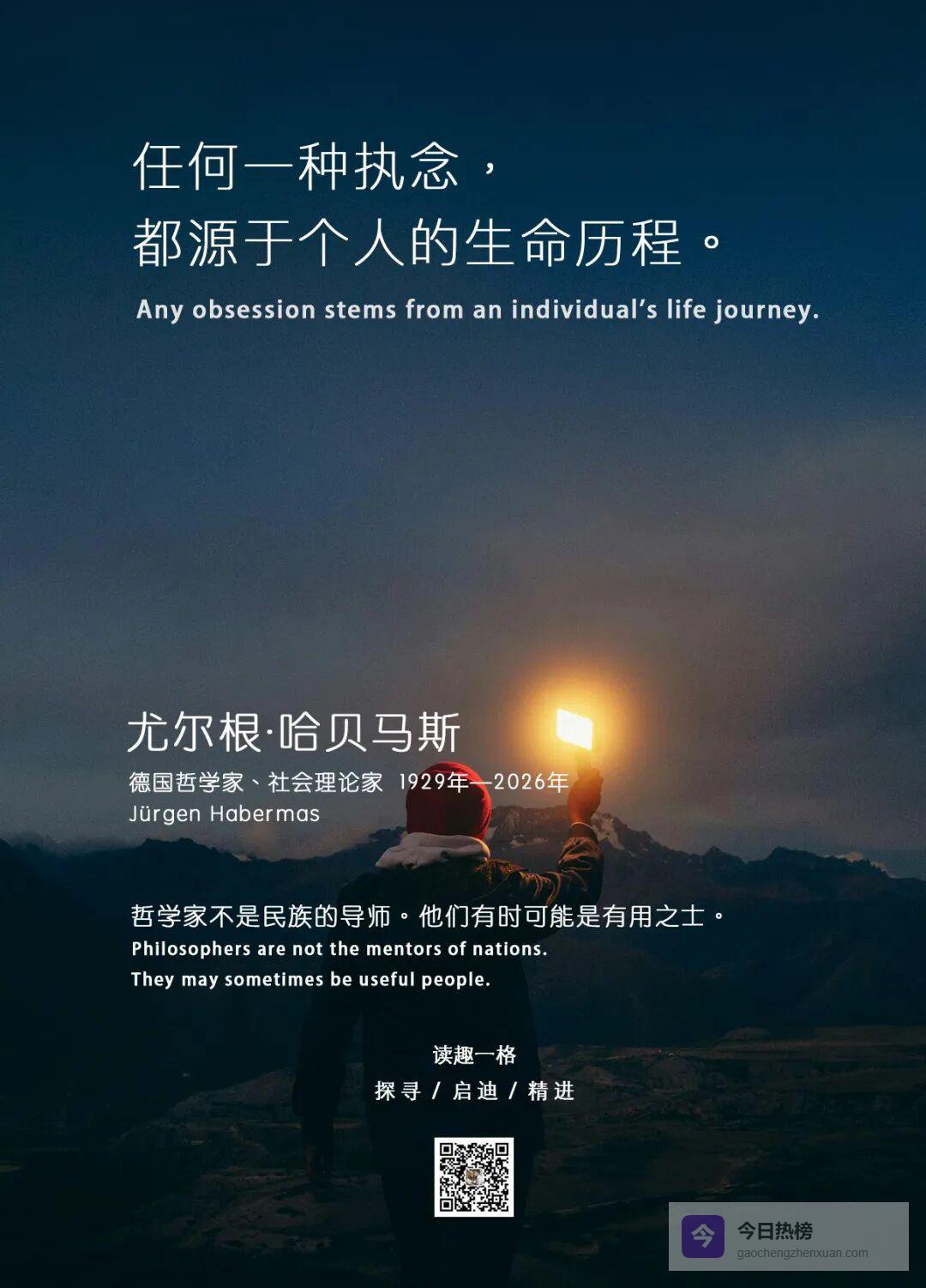——当下我们被虚假信息、极端情绪裹挟,人心越来越冷漠。哈贝马斯提醒:无论世界多混沌,守住真诚、追寻真相,不盲从、不冷漠,就是最珍贵的清醒。