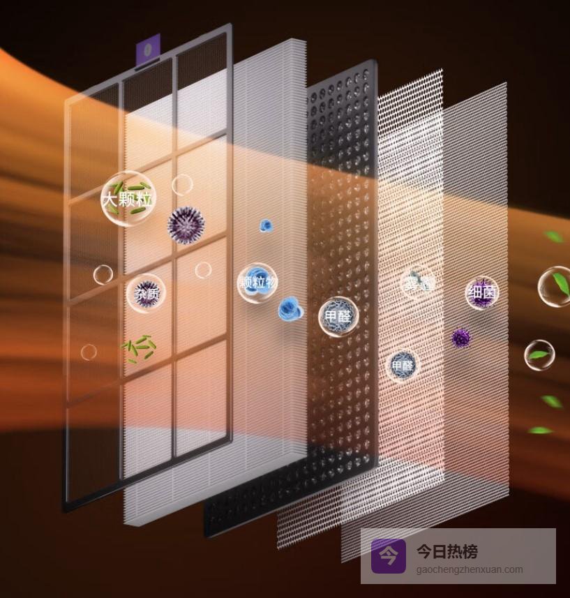 备受关注的滤网:采用五重渐进式过滤技术,H13级滤网轻松捕捉更细微颗粒,提升净化效率,提供持久的清新感受。