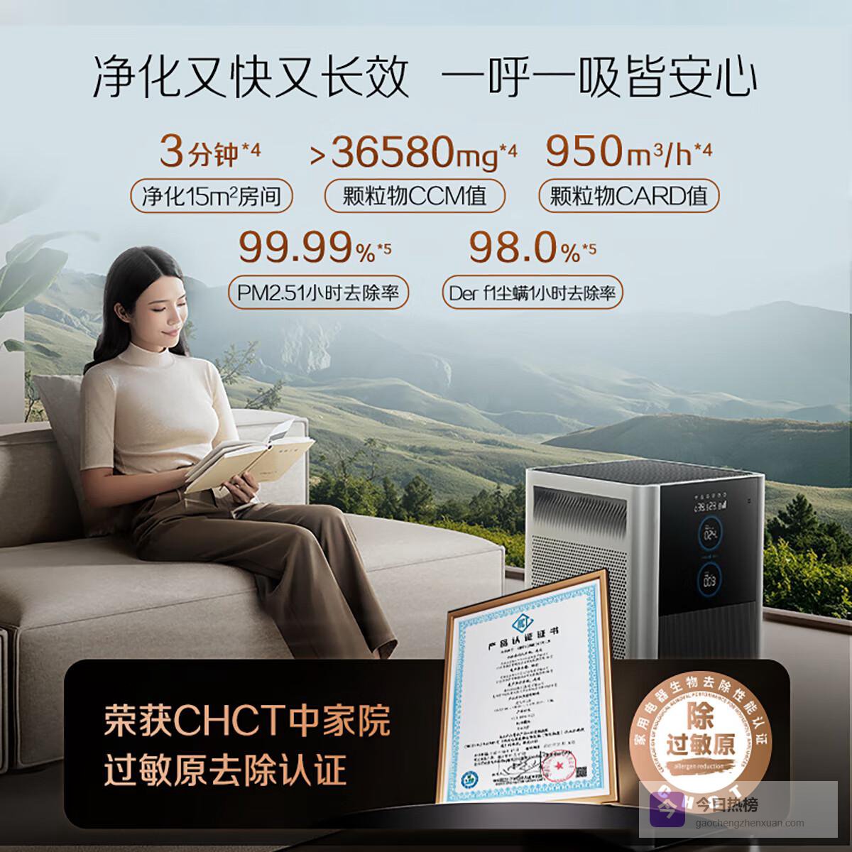 推荐理由:这款空气净化器不仅高效除甲醛,还能有效去除PM2.5,为家庭提供健康清新的空气,确保每一口呼吸都是安全的。