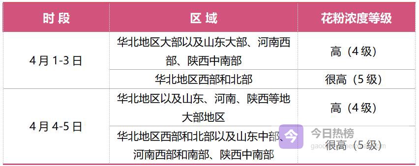 国家卫生健康委、中国气象局3月31日18时联合发布未来一周花粉浓度预报服务提示: