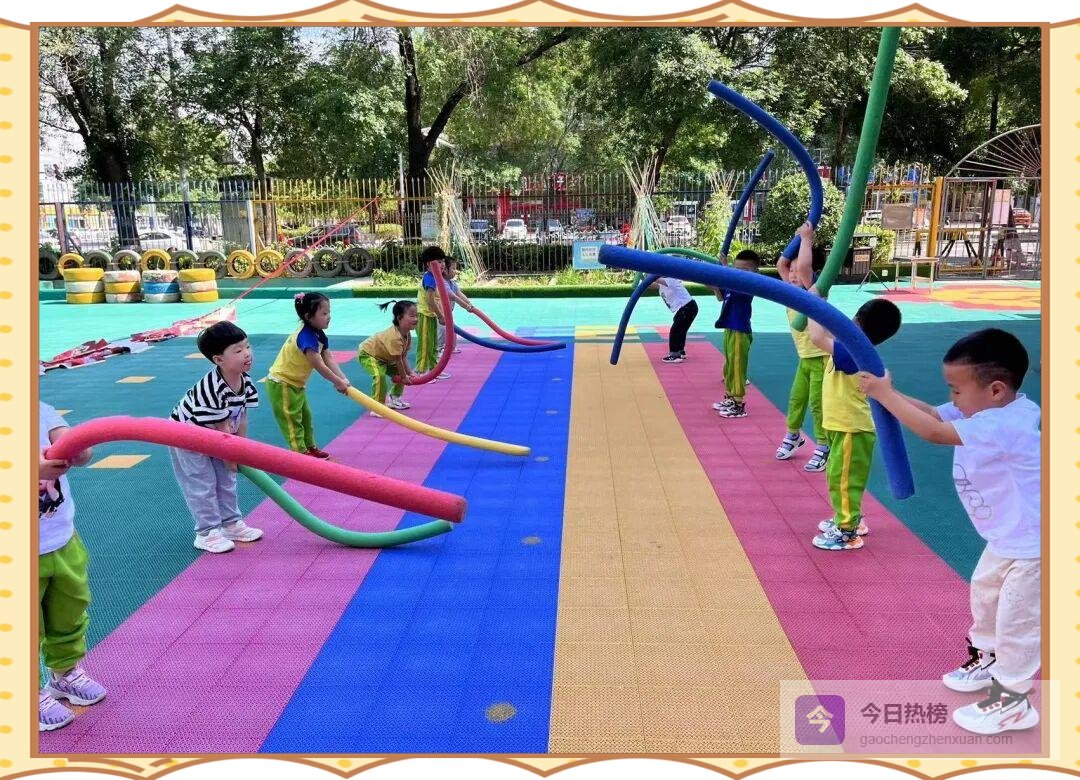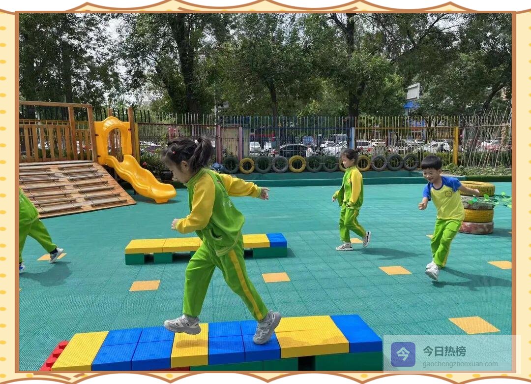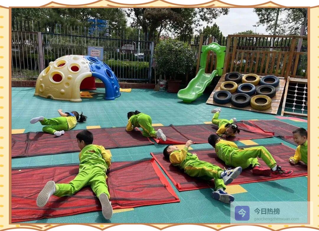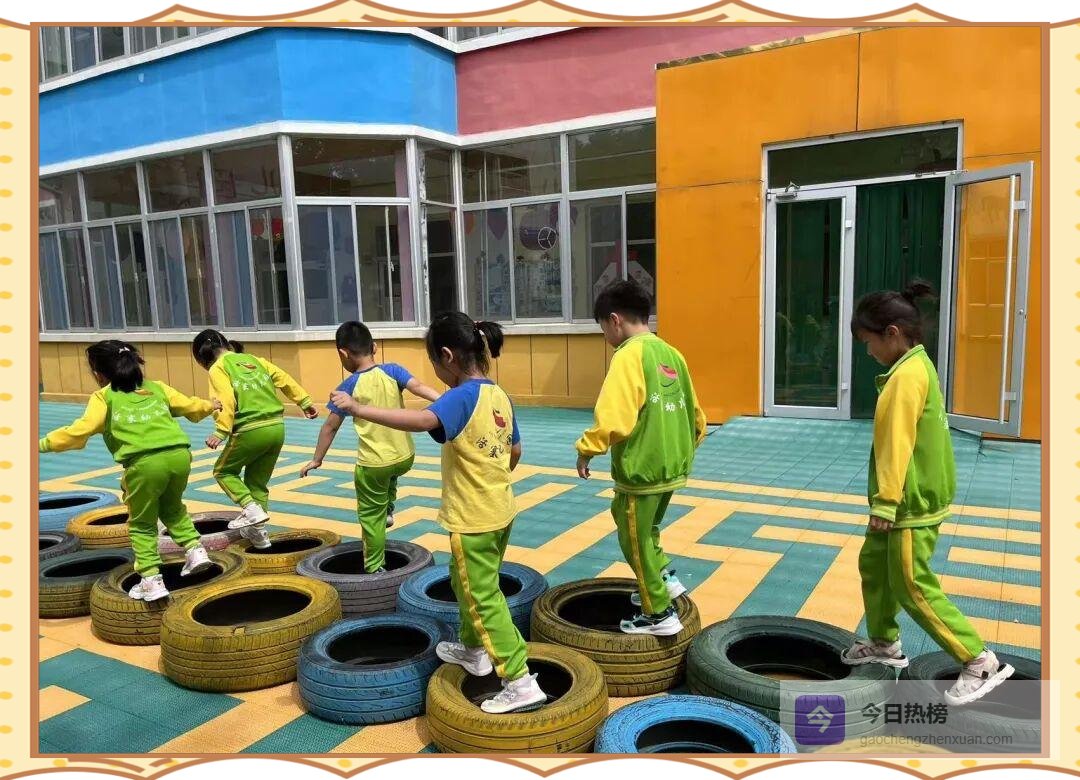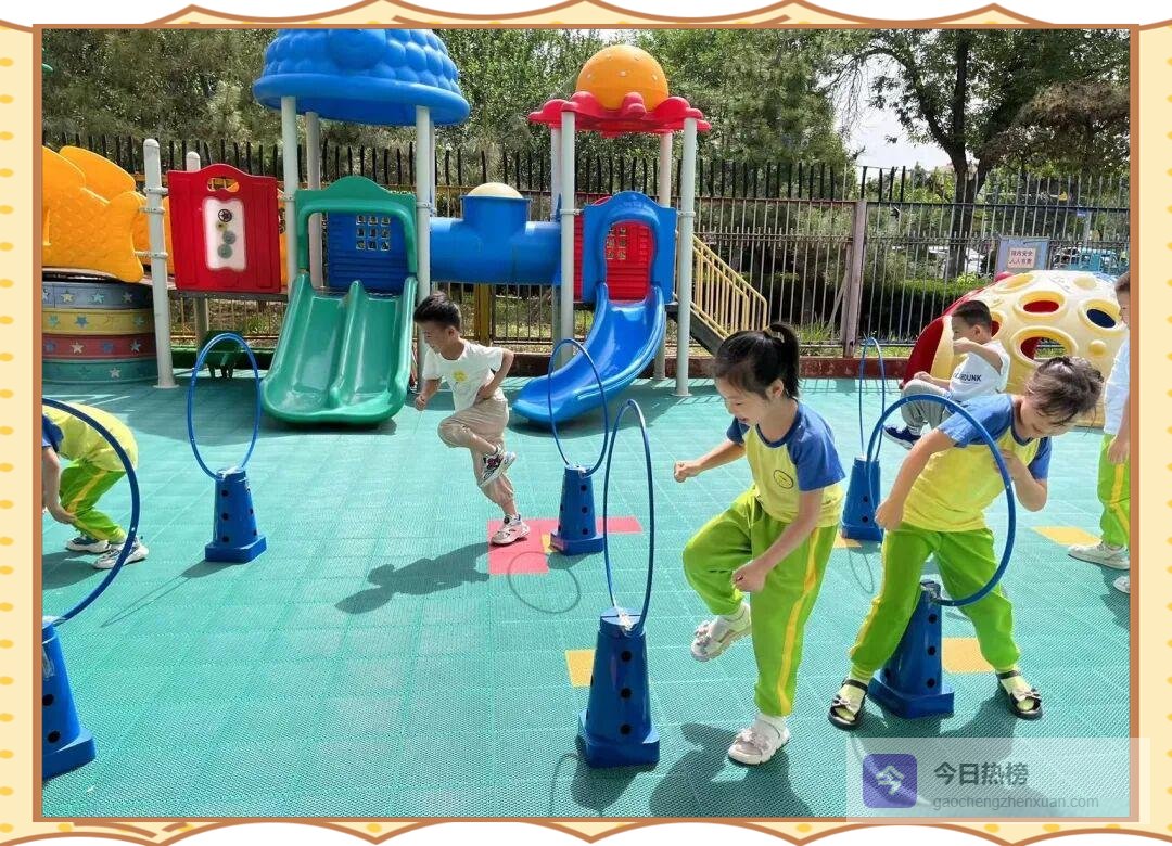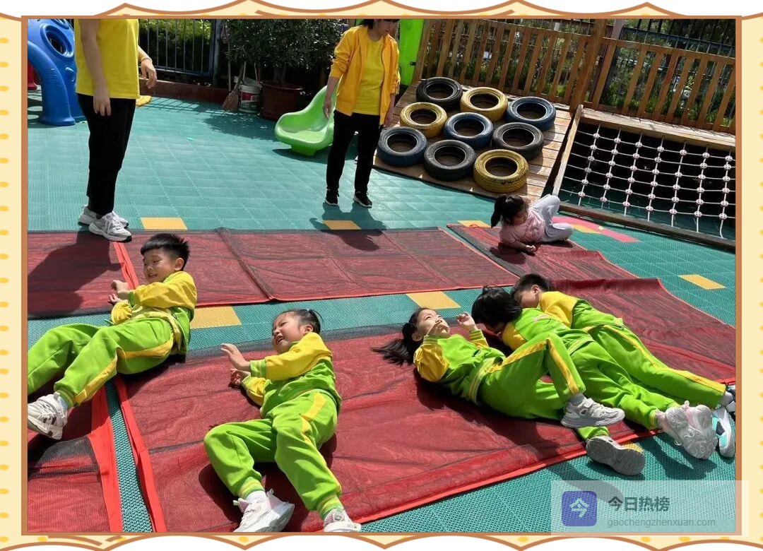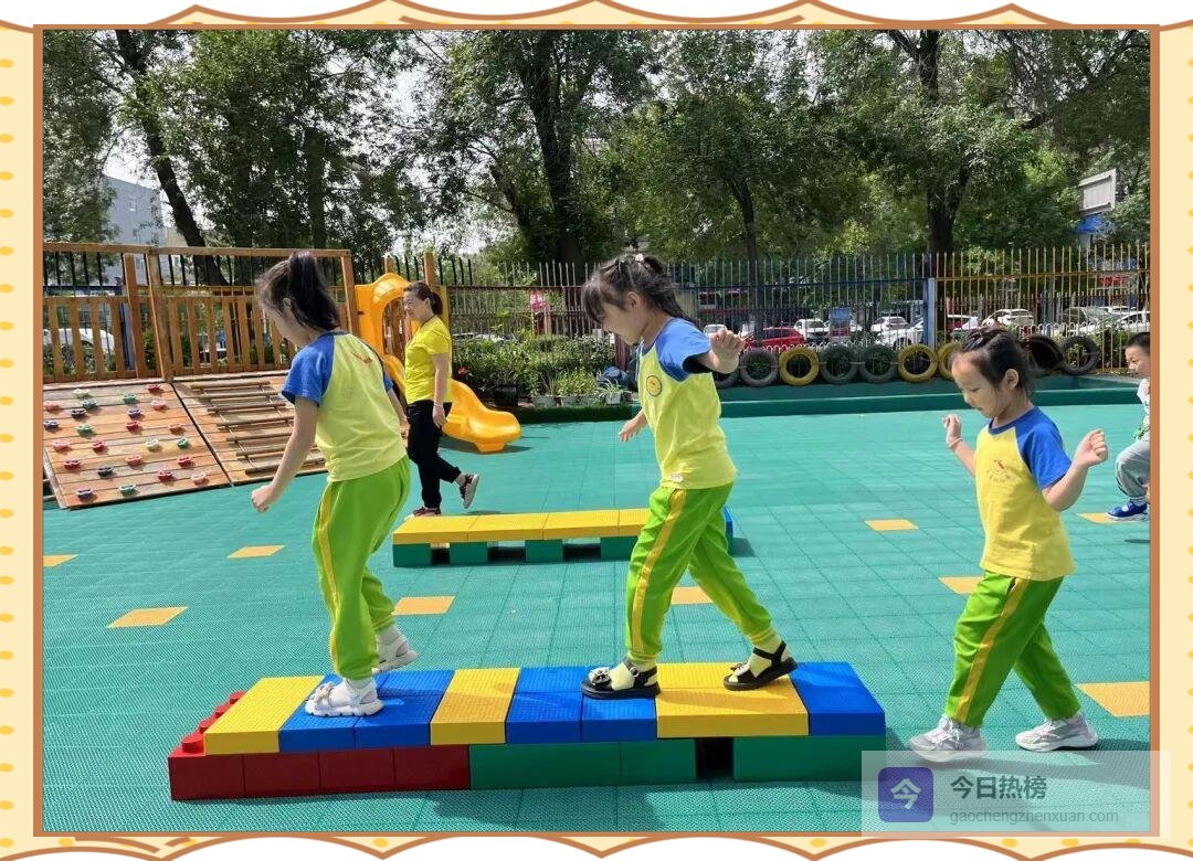 第二阶段,老师把亿童户外体育器械搬到草坪上,变成“自由市场”:轮胎是“蹦床”,竹梯是“高跷”,软桥是“平衡挑战区”……孩子们根据自己的节奏和兴趣自由流动,有人连闯三关,有人专挑最软的那个轮胎躺平晒太阳。笑声此起彼伏,老师只在旁边悄悄记录:哪个孩子刚刚尝试了“轮胎秋千”,哪个小伙伴主动把竹梯让给不会走高跷的同伴。自由选择带来的自主感,让运动不再是任务,而是“我想做”的主动探索。