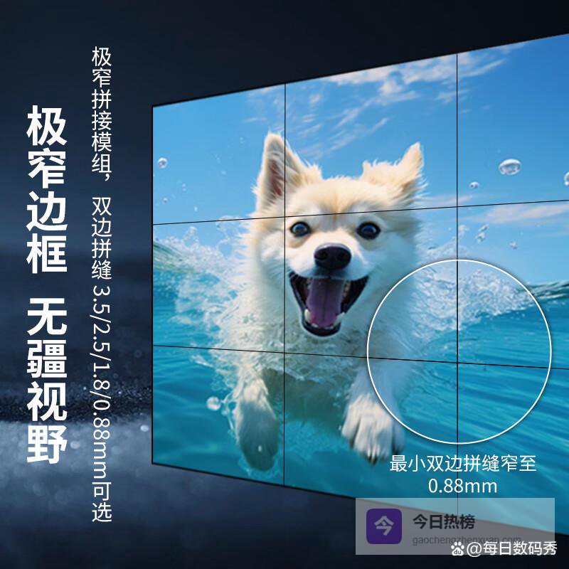 超窄边框设计:仅3.5mm边框,拼接无缝连接,提升整体观看感受,适合大型展示需求。