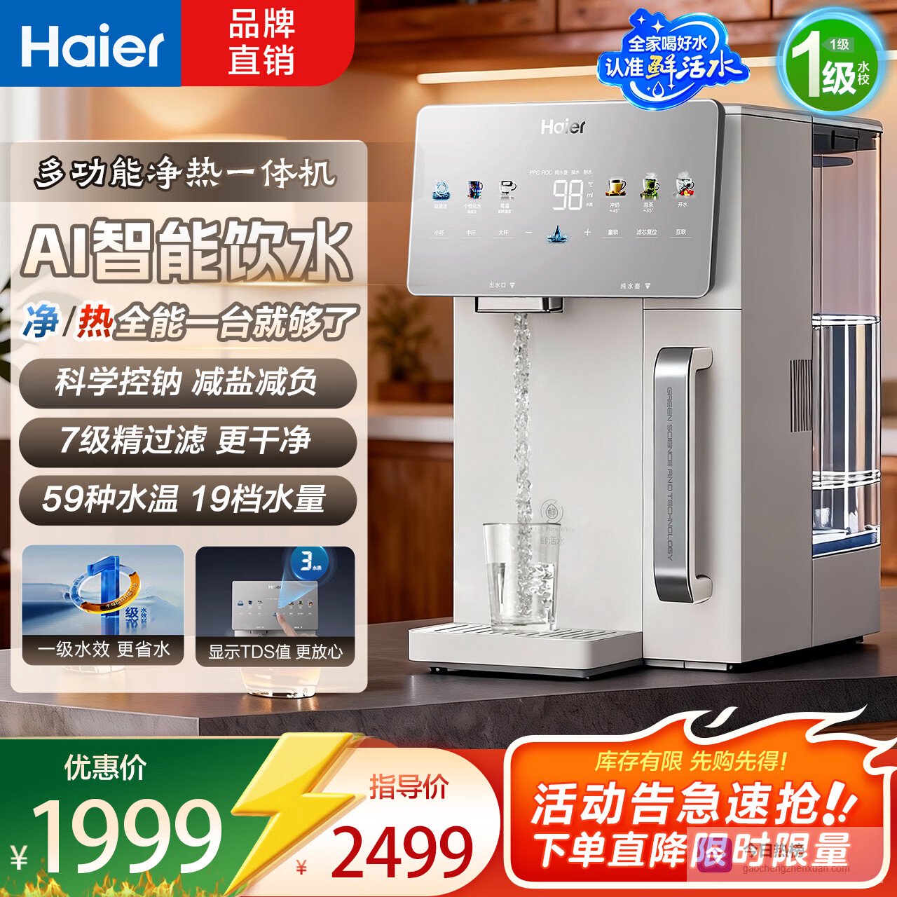 海尔净水器家用台式净饮机一体式矿泉直饮水机免安装炫彩大屏低钠鲜活水59档水温每度可调新款热销 【7级鲜活】 净界¥