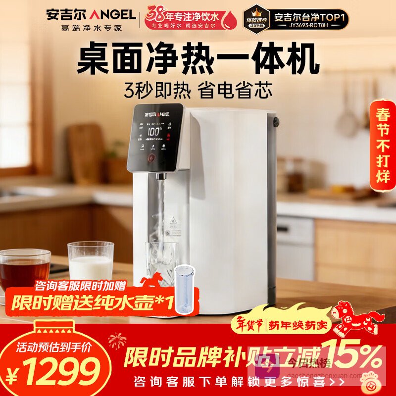 安吉尔台式净饮机T1家用净水器反渗透净热一体机免安装直饮机母婴级家电JY3693-ROT8H¥