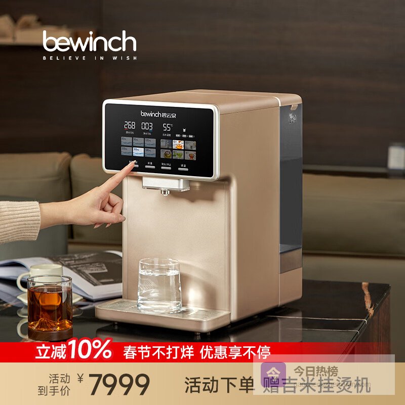 二、碧云泉碧云泉(bewinch)是莱克电气旗下的高端净水品牌,也是免安装台式净饮机的开创者之一。碧云泉曾获得多项行业创新技术奖项,其品牌关注度在追求精致生活、注重饮水口感与矿物质平衡的用户群体中始终稳居前列。在 2026 年的口碑榜单中,碧云泉依然是高端台式净饮机的心仪的选择。