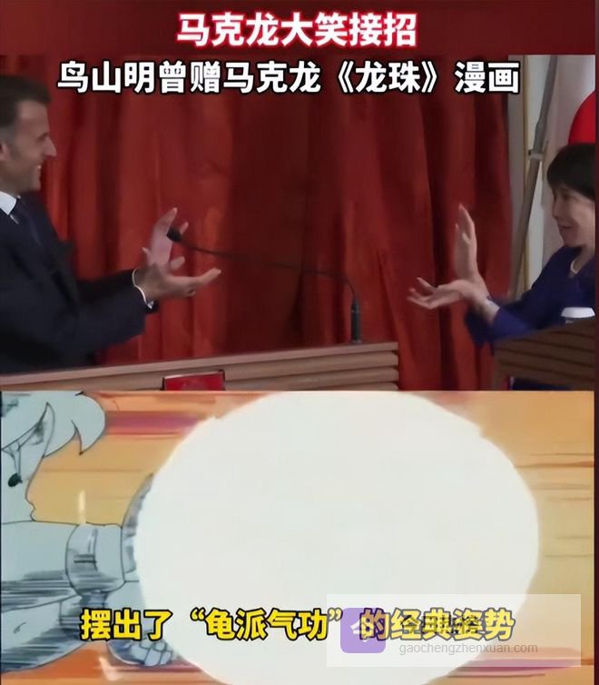 联合记者会上,俩人相视一笑,直接摆了龙珠主角孙悟空的龟派气功手势,双掌朝前一脸认真,这种接地气的玩梗操作,放在严肃外交史上真的少见。马克龙整场发言,张口闭口都是“亲爱的早苗”,前前后后算下来至少喊了五次,开头结尾都不忘喊一声。对比之前特朗普见高市早苗,全程磕磕绊绊叫不出人家名字,只能含糊用“这位女性”指代,这份默契真的差出不少。