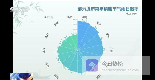 中国农业大学副教授 胡琦:我们研究发现,最近十年南方地区清明时节的降水概率可以达到70%到80%,而谷雨节气降水概率就骤降至40%以下,也印证了这一规律。