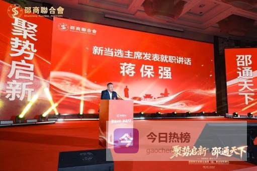 蒋保强在当选邵商联合会第五届主席后发表热情洋溢、饱含深情的履职讲话。他对当选邵商联合会第五届主席深感使命光荣、责任重大,定当恪尽职守、不负重托。当前,民营经济迎来前所未有的发展机遇,这是我们干事创业的黄金期,更是邵商抱团发展、回报家乡的关键期。邵商联合会要顺应大势、凝聚合力,变“单打独斗”为“抱团远航”,变“分散发力”为“协同攻坚”,共谋发展、共筑辉煌。