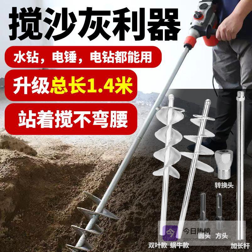 四、混凝土中的交响指挥棒搅拌水泥本是脏累活,直到遇见这根会唱歌的不锈钢搅拌杆。螺旋叶片经过流体力学计算,搅动时会产生向下的涡流,不仅省力30%,还能让砂浆均匀得像是米其林厨房打发奶油。杆身的刻度线让配比控制变得精准,再也不用担心水泥过稀或过稠。