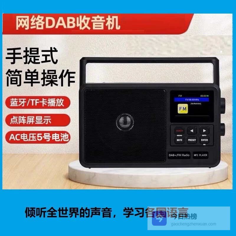 【商品推荐】4:汉荣达806外销版DAB+FM收音机它最值得称道的是DAB数字广播接收稳定性强——采用双天线分集接收技术,室内普通摆放即可实现98%以上DAB信号捕获率,切换频道延迟低于0.8秒,远超同类产品平均1.5秒水平。FM频段同步支持RDS信息解析,能实时显示歌名、电台LOGO,信息获取更完整。