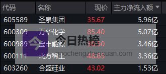 Wind实时监测数据显示,截至午间收盘,新材料板块获得逾18亿元主力资金净流入,其中圣泉集团、万华化学、宝丰能源、北方稀土等均获得超亿元净流入。