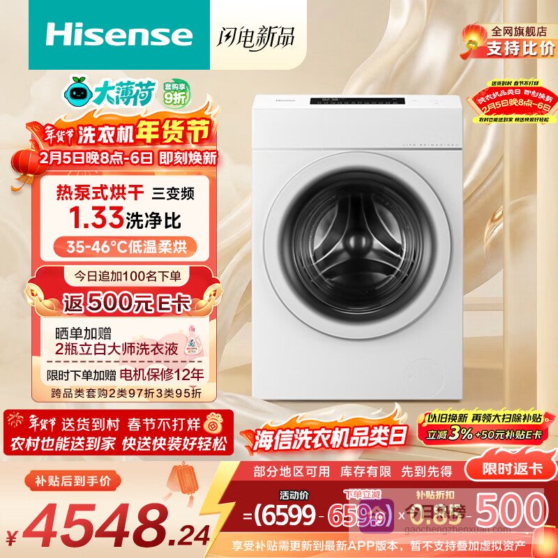 第四款:海信热泵洗烘一体E7Q洗衣机 13公斤