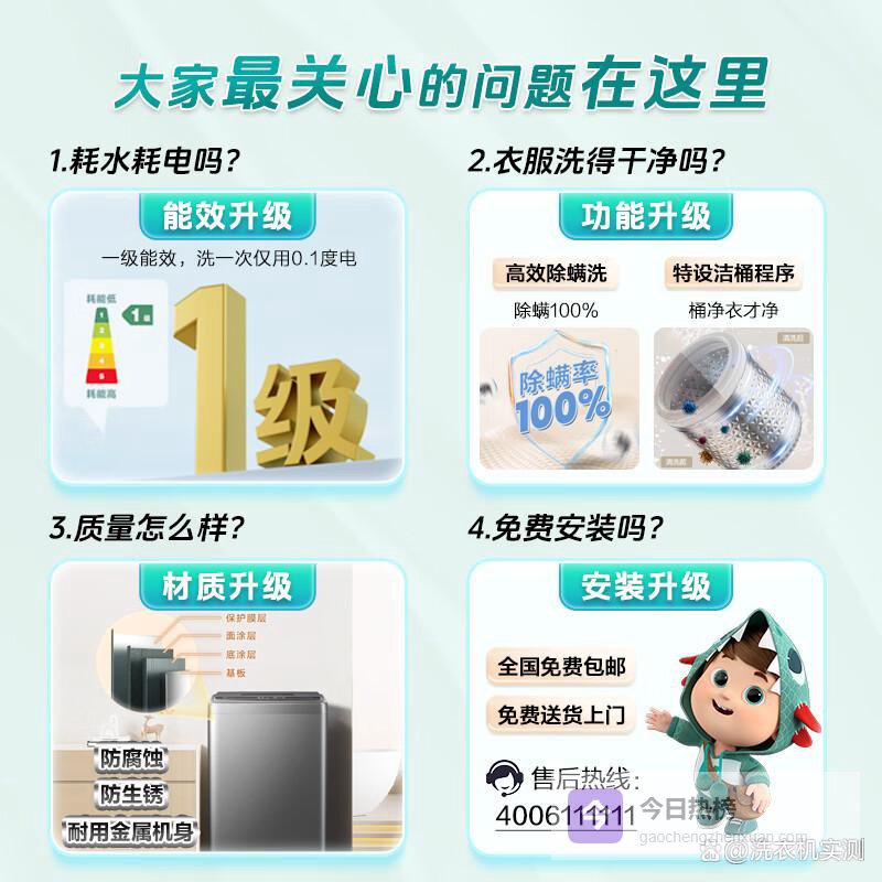 从性能表现来看,海信洗衣机配备了先进的变频技术和健康桶自洁功能,确保高效清洁同时不伤衣物。一级能效标志意味着它在节能方面表现出色,每次洗涤仅消耗0.1度电,适合关心电费支出的家庭。海信的100%除螨率也是一个亮点,尤其适合有小孩或敏感体质的人群,为家人的健康保驾护航。
