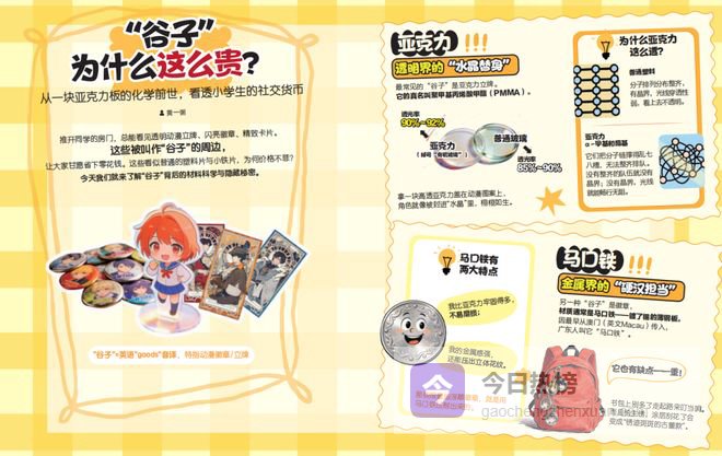 推开同学的房门,总能看见透明动漫立牌、闪亮徽章、精致卡片。这些被叫作“谷子”的周边,让大家甘愿省下零花钱。看似普通的塑料片与小铁片,为何价格不菲?今天我们就来揭秘谷子背后的材料科学与隐藏的秘密。