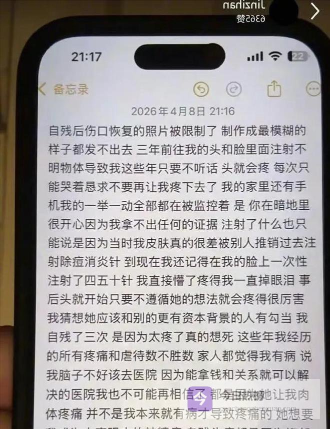 那天晚上十一点十七分,她开了直播。没露脸,没美颜,也没开麦。镜头只对着她手里的手机屏幕,上面是备忘录里一行行打出来的字。滑了快一个小时,手指没停过。左小臂一直露在镜头边,有旧疤,也有新结的痂,颜色不一样,但都清楚。有人录了屏,截图发出来,三个人不同平台存证,图还在。