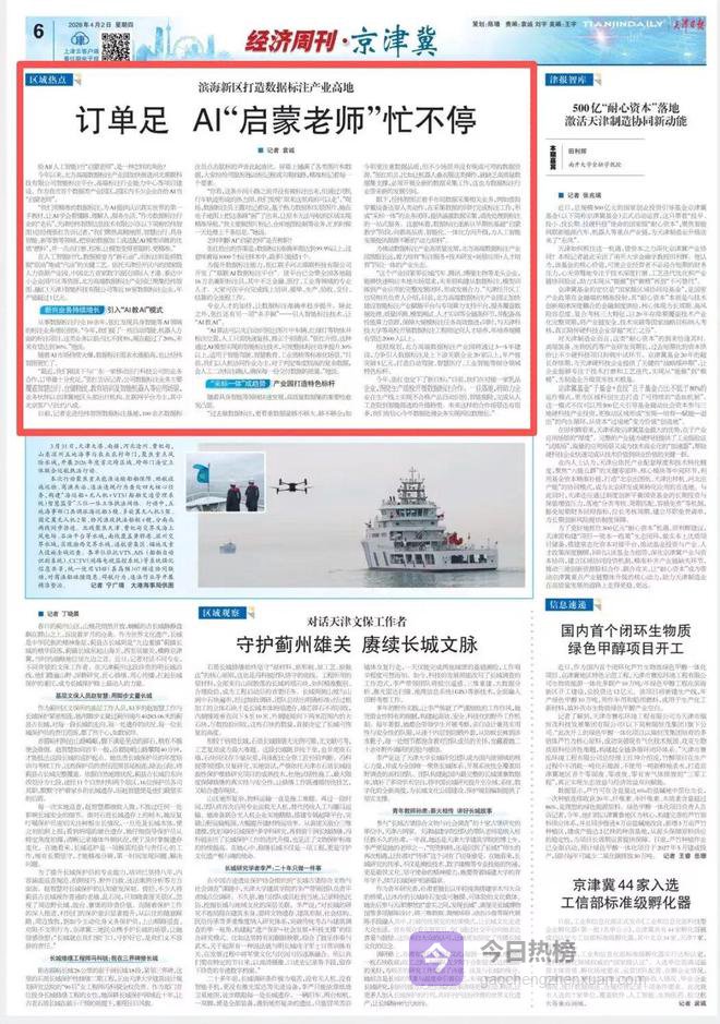 日前,《天津日报》刊发《滨海新区打造数据标注产业高地 订单足 AI“启蒙老师”忙不停》文章,聚焦位于天津经开区的北方高端数据标注产业园,揭秘数据标注如何为人工智能提供认知世界的“第一手教材”。