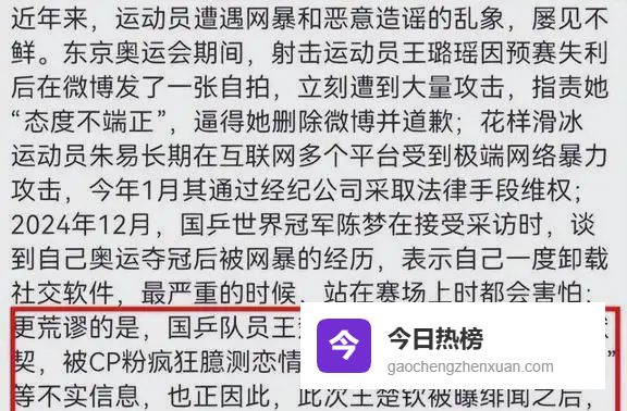 连运动员的训练和比赛都被饭圈文化影响了,他们也是人,难免会受到各种声音的影响,心态会受到波动。