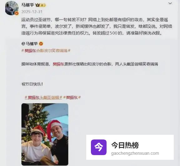 马继华还没满足,到了2025年圣诞节,他突然把矛头对准了正待在德国的樊振东。