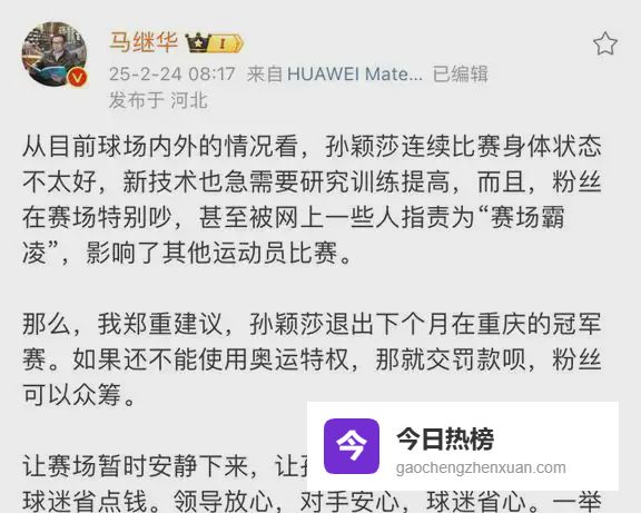 有网友说,他说的话虽然没直接提到孙颖莎,但每一句都透着孙颖莎的感觉。