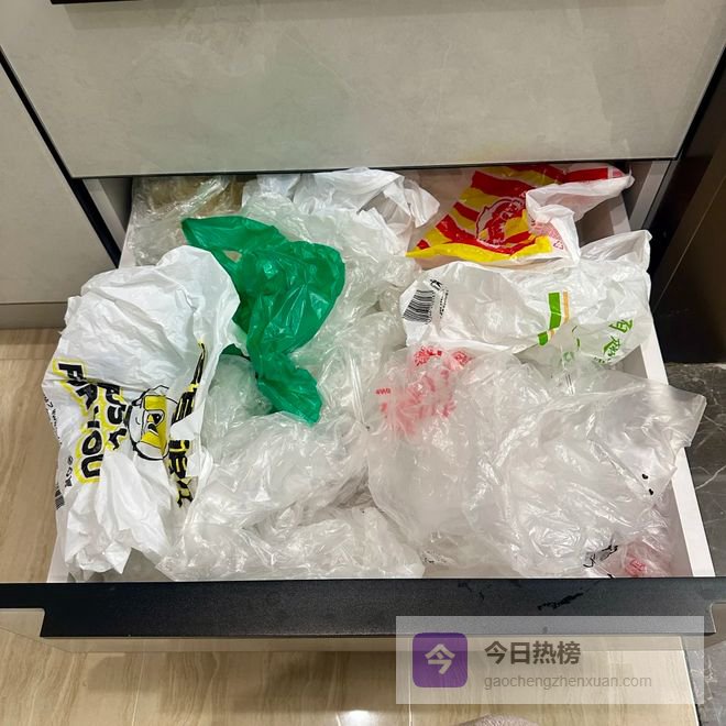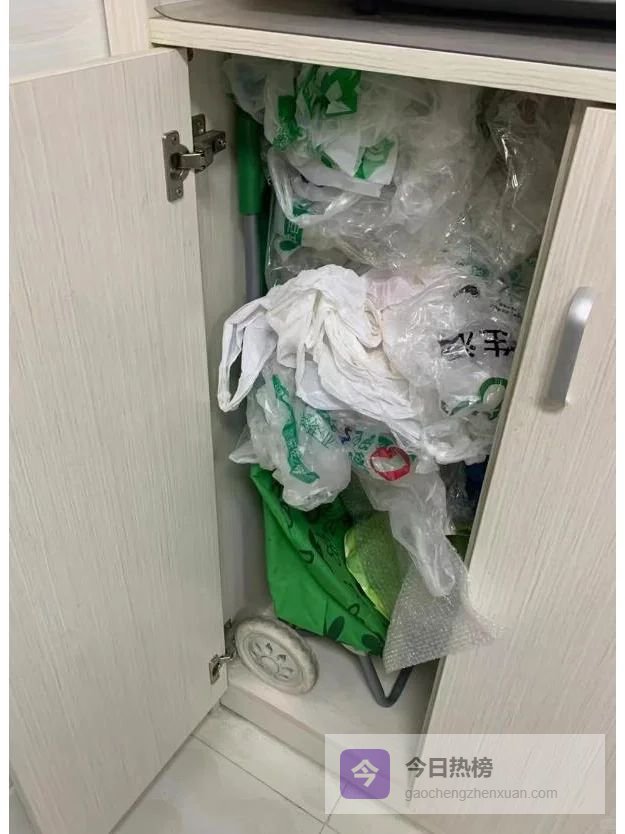 买菜的袋子,买衣服的包装袋。全都舍不得扔掉,于是都攒在橱柜里。
